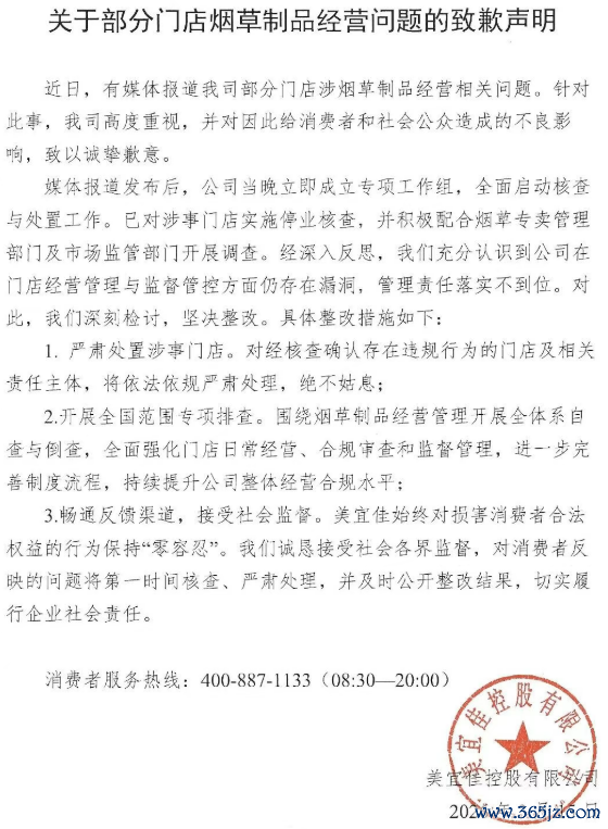 美宜佳就部分门店被曝卖假烟致歉:严处涉事门店,开展专项排查美宜佳就部分门店被曝卖假烟致歉:严处涉事门店,开展专项排查