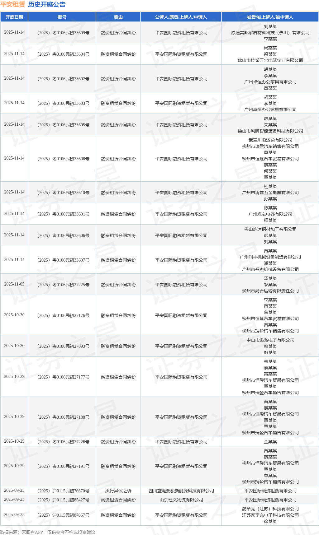 本站消息涨声操盘,根据天眼查APP显示,近日公布了一则平安国际融资租赁有限公司作为被告/被上诉人的开庭公告,详细内容如下: